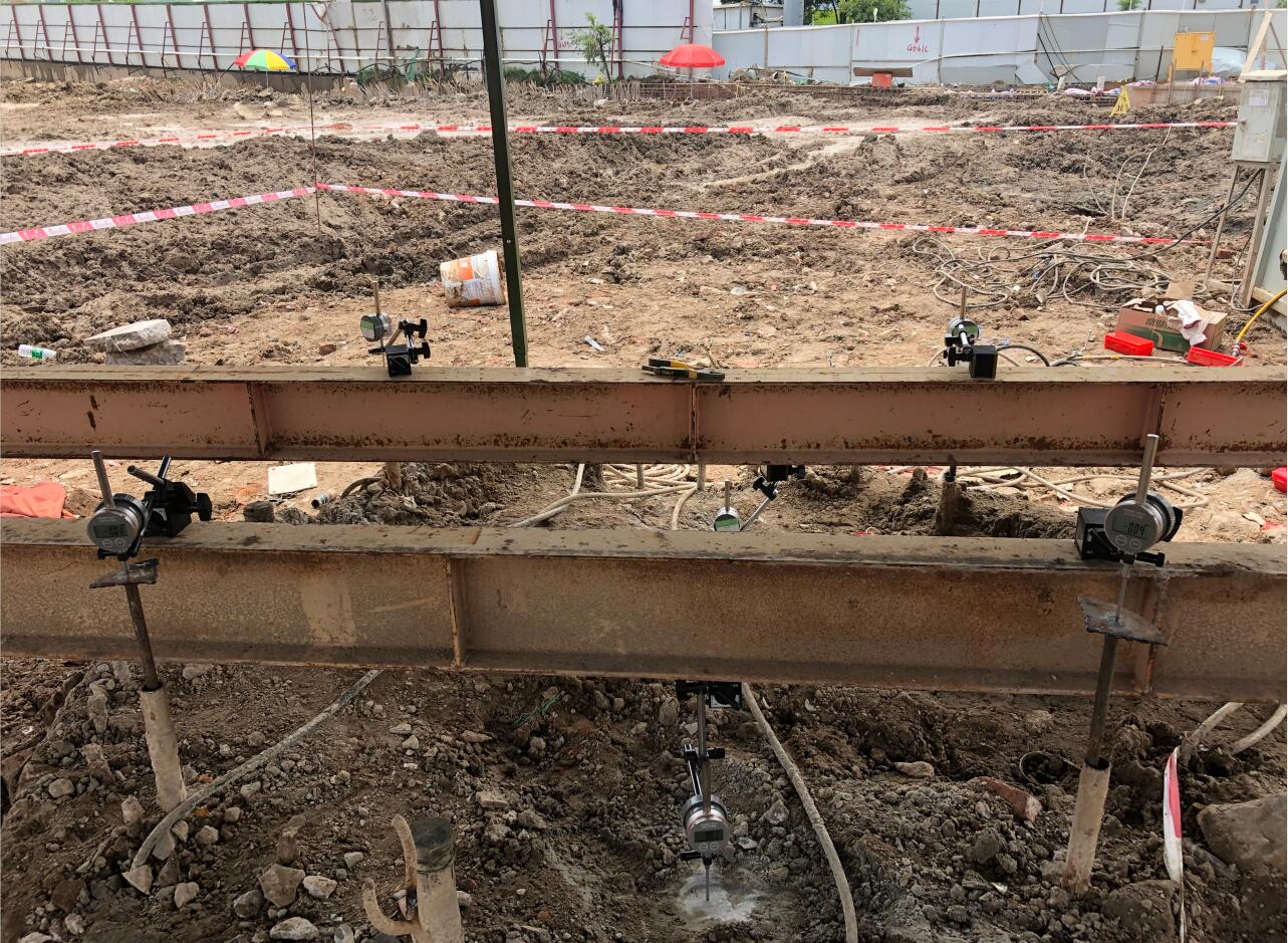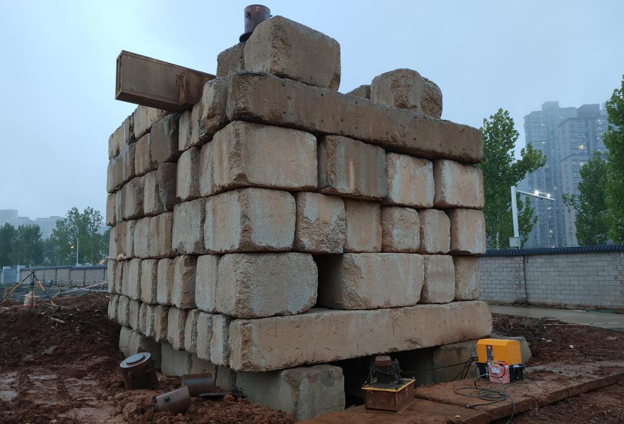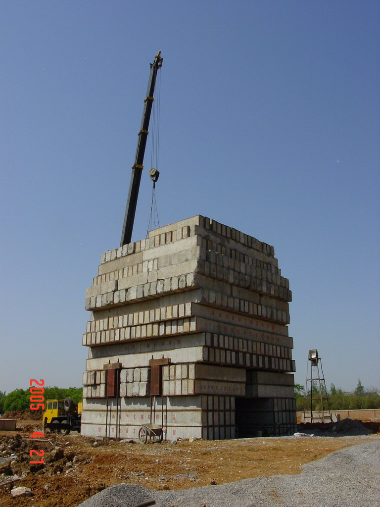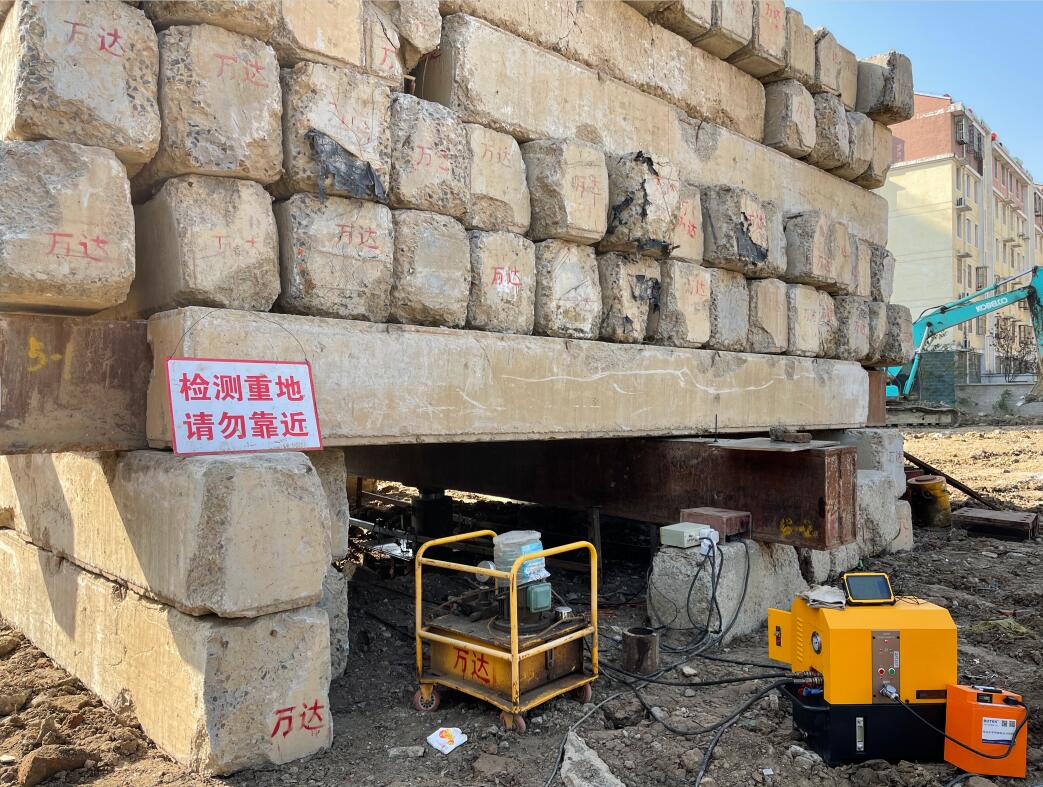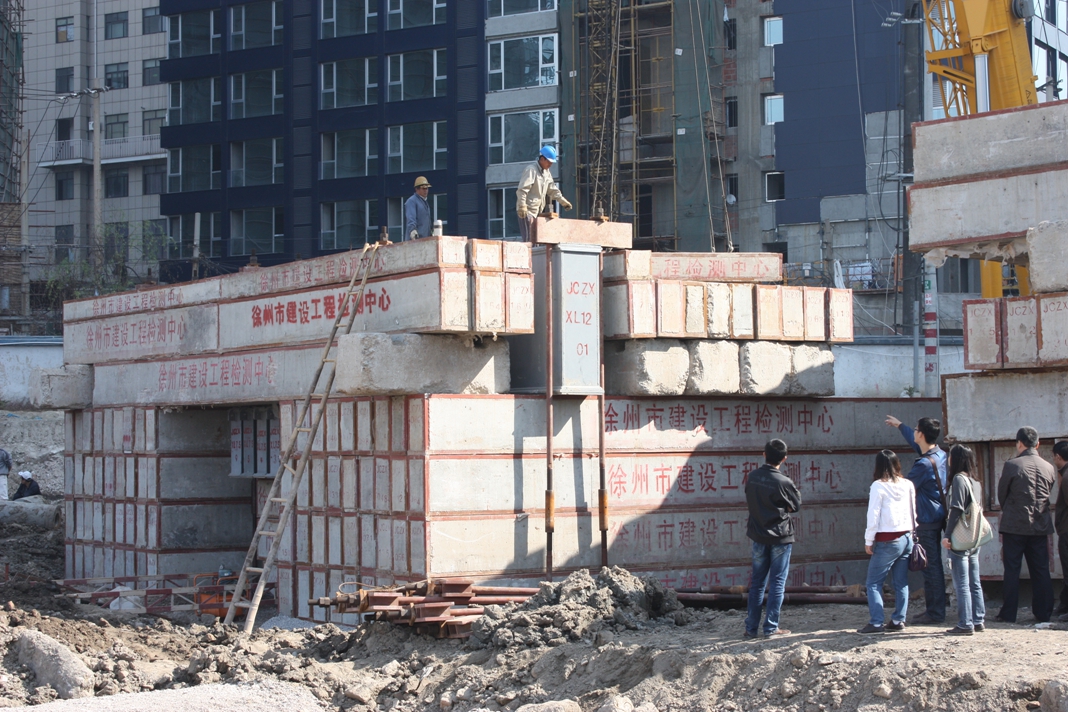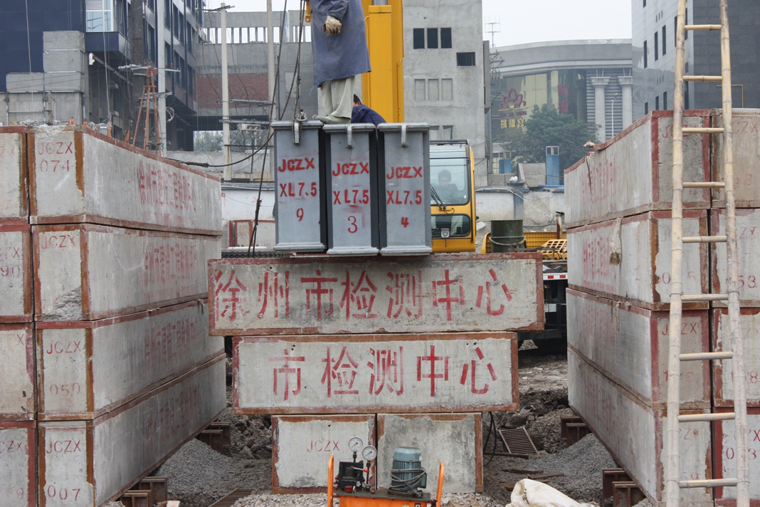 江蘇省徐州市淮海戰役紀念館改擴建工程為大跨度框架結構工程,位于著名的淮海戰役紀念塔園林內。其基礎型式采用人工挖孔灌注樁,樁端嵌入新鮮基巖內800mm,樁徑1000mm,設計單樁堅向抗壓承載力特征值7800KN。要求最大試驗荷載15600KN。