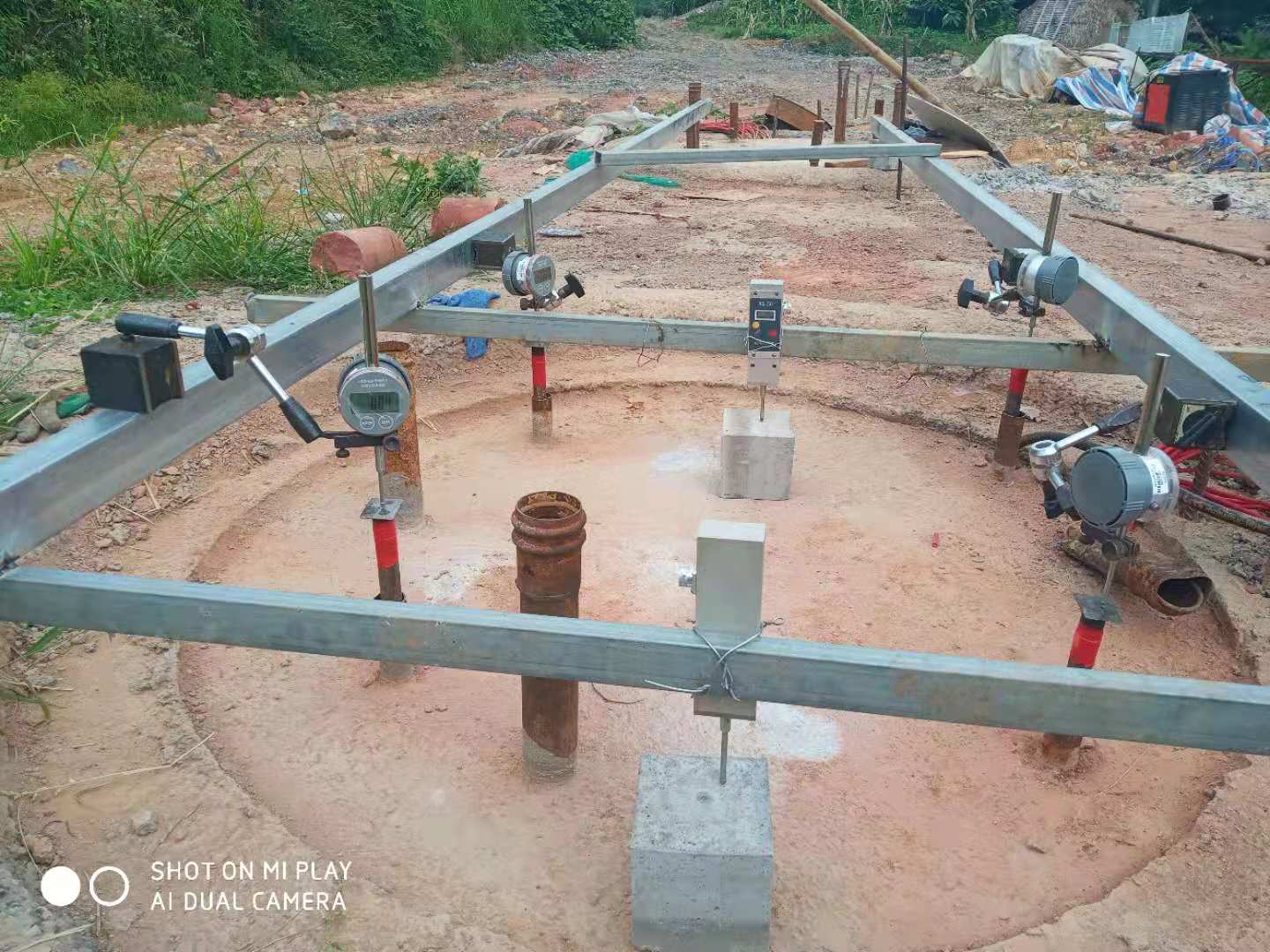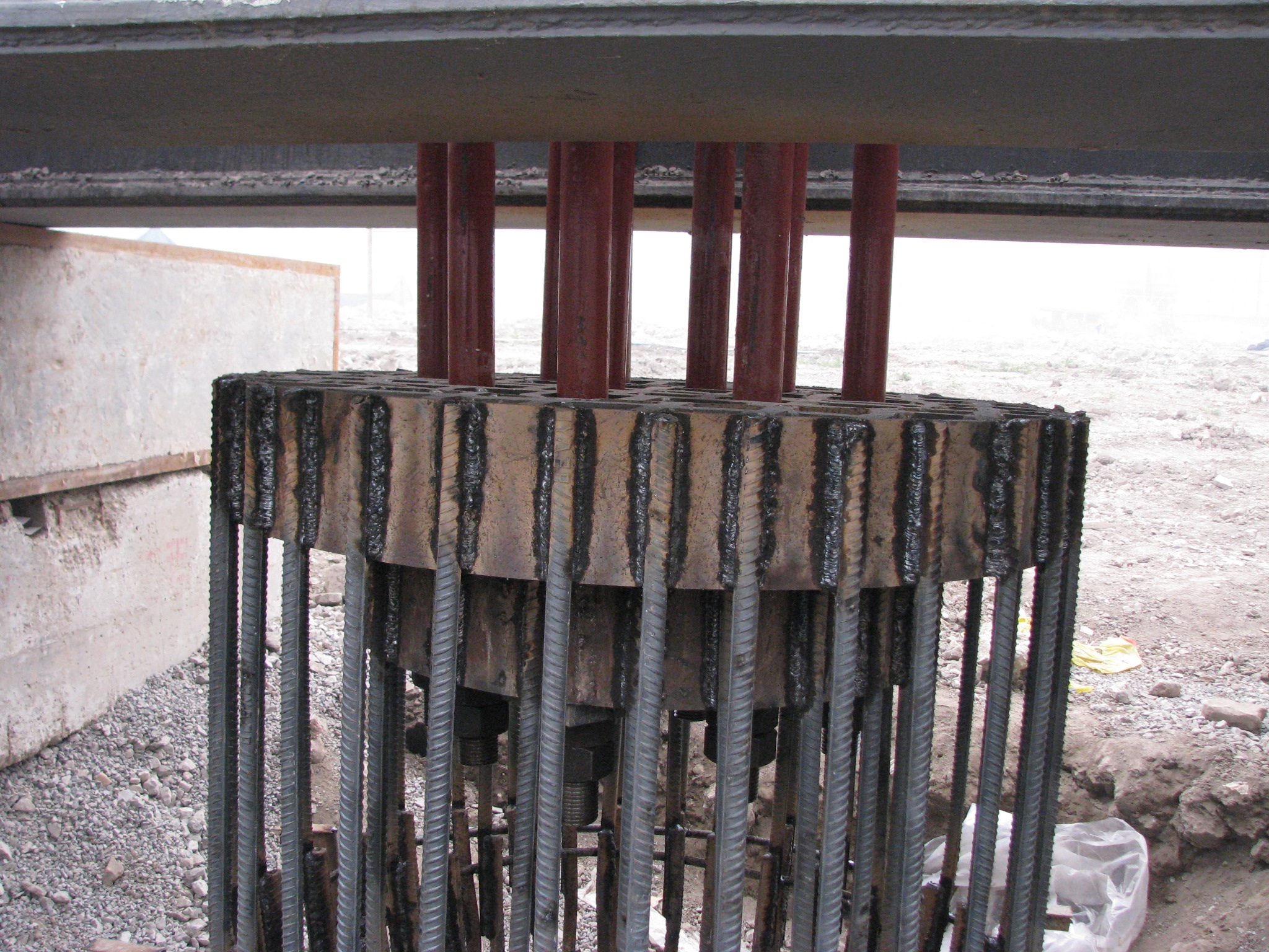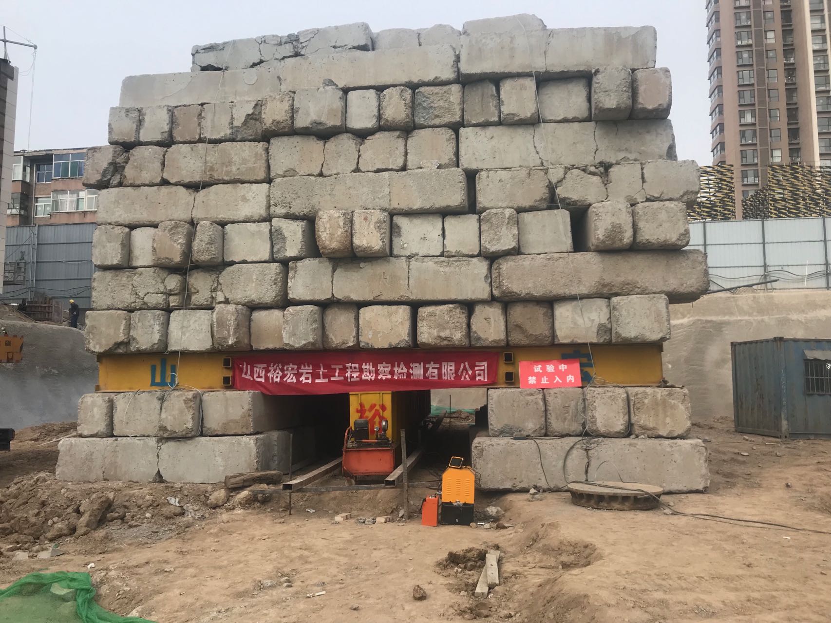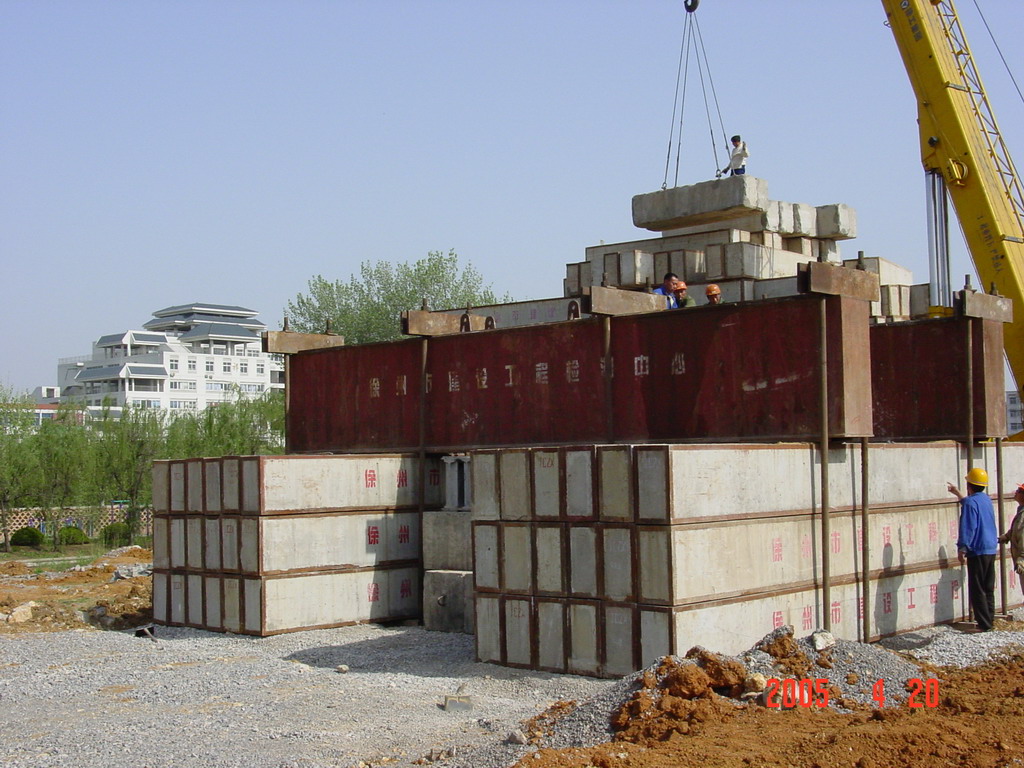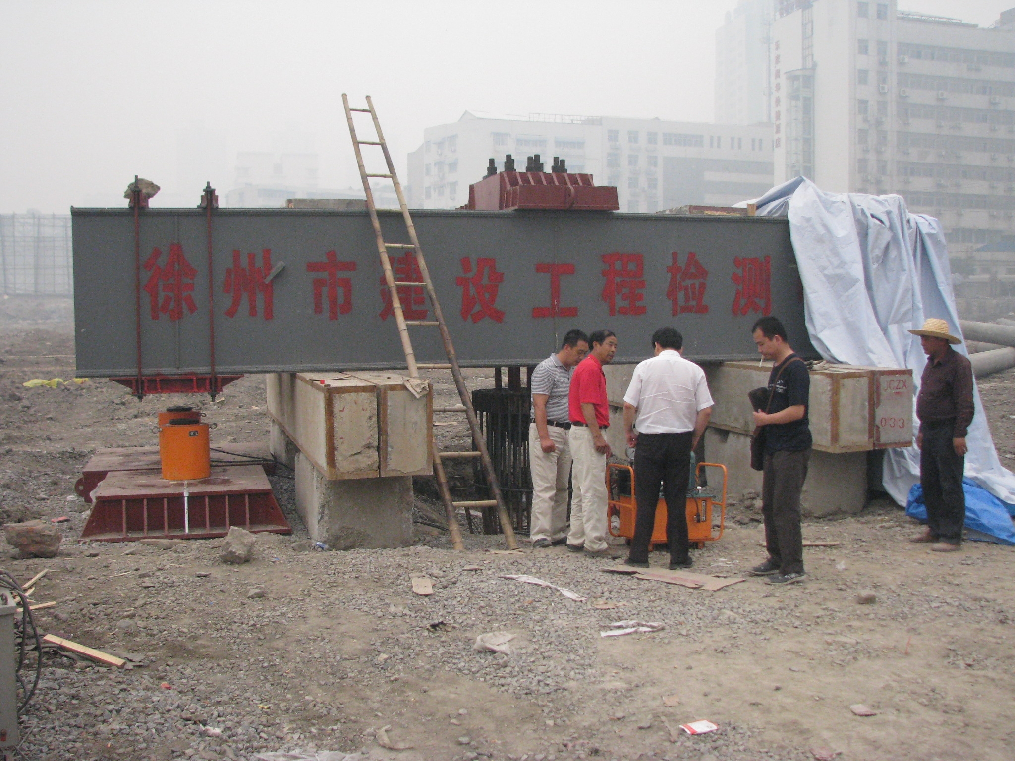 江蘇省徐州市淮海戰役紀念館改擴建工程為大跨度框架結構工程,位于著名的淮海戰役紀念塔園林內。其基礎型式采用人工挖孔灌注樁,樁端嵌入新鮮基巖內800mm,樁徑1000mm,設計單樁堅向抗壓承載力特征值7800KN。要求最大試驗荷載15600KN。